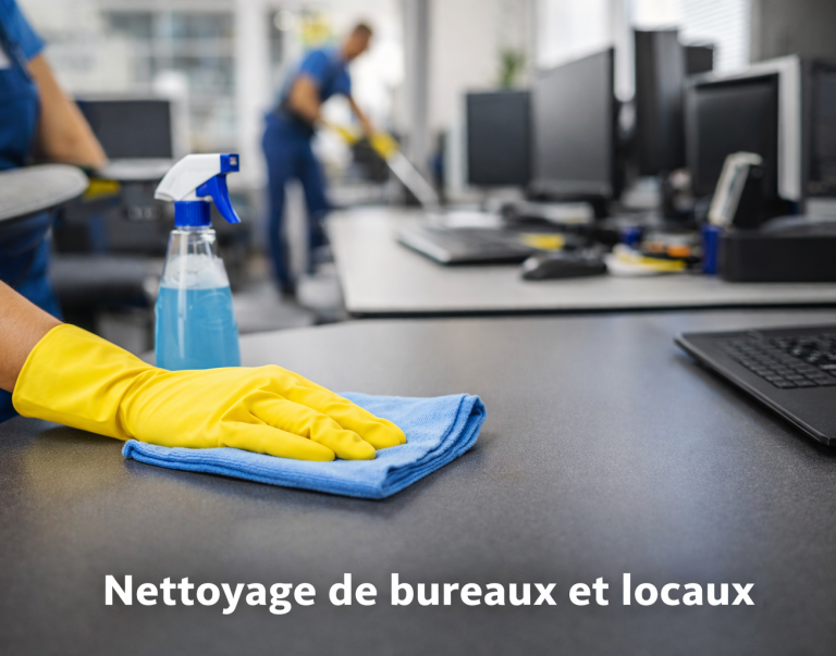 Nous assurons le nettoyage régulier ou ponctuel des bureaux et locaux professionnels afin de garantir des espaces propres, sains et agréables au quotidien. Nos prestations sont adaptées à vos besoins et réalisées avec du matériel et des produits professionnels.