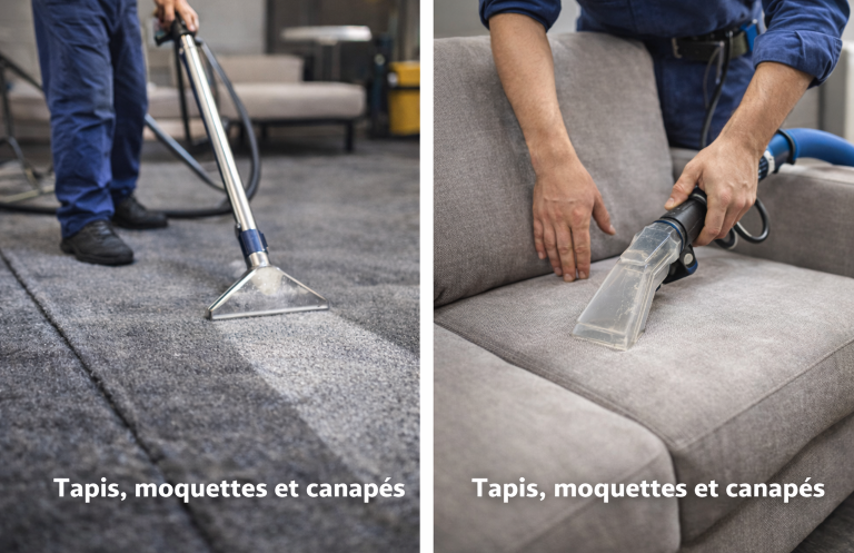 Nous assurons le nettoyage en profondeur de vos tapis et canapés pour éliminer taches, poussières et allergènes. Des méthodes professionnelles adaptées à chaque textile pour un résultat propre, sain et durable.